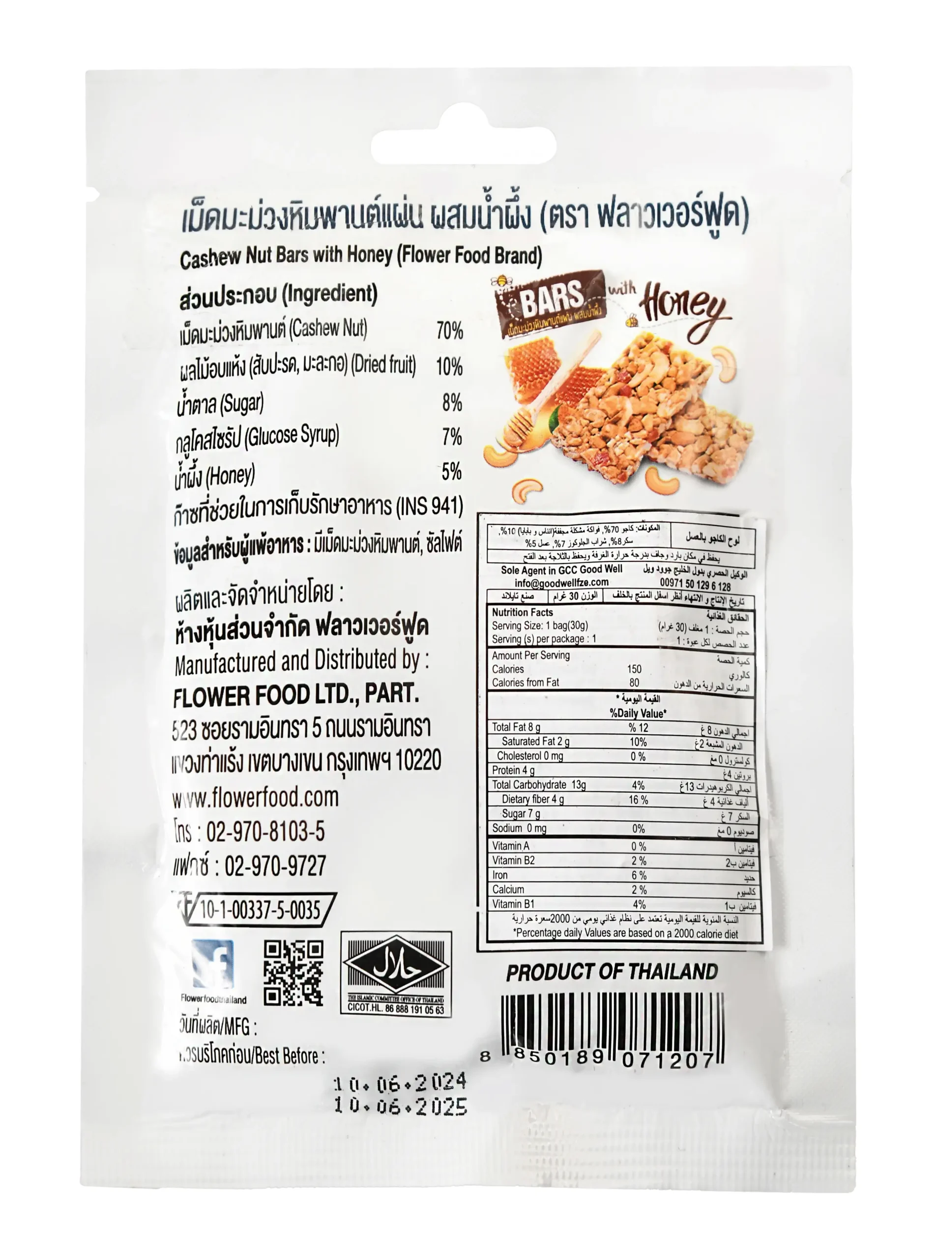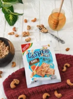 A delicious and healthy bar that combines roasted cashews with natural honey, offering a rich blend of sweet and nutty flavors in every bite.